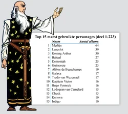 - Merlijn wordt in 14 strips genoemd, het meest van iedereen.